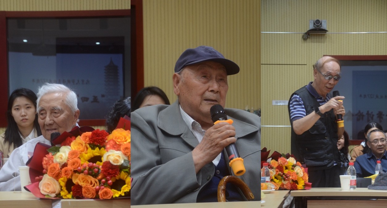 俄语系教师代表向出席本次讨论会的前辈们献花,全体与会者合影留念。