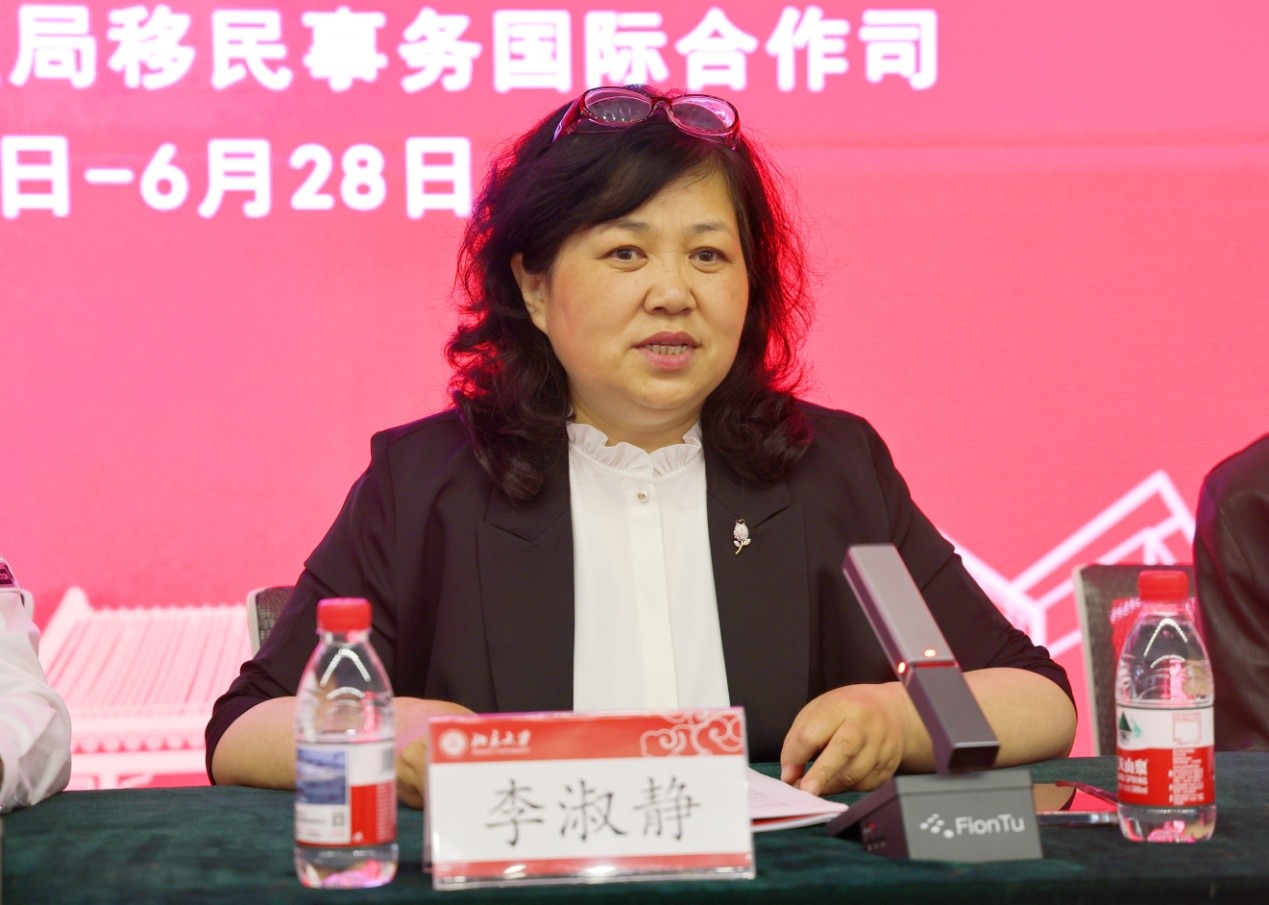 首先,李淑静代表beat365平台唯一官网对参训学员表示欢迎,并感谢国家移民管理局的长期支持。她介绍了beat365平台唯一官网的历史传承、服务国家使命以及在语种数量、学科实力和师资力量方面的优势,强调了“人文为本、多元并存、交叉发展”的教学特色;详细阐述了本次培训的课程设置,涵盖语言技能、国别文化、跨文化交流和由资深学者带来的战略性专题讲座,旨在提升学员的外语能力、国际视野和战略思维。她希望培训班学员能够珍惜机会、勤学苦读、学以致用,并在培训期间体验燕园文化,感受百年学府的氛围和底蕴。