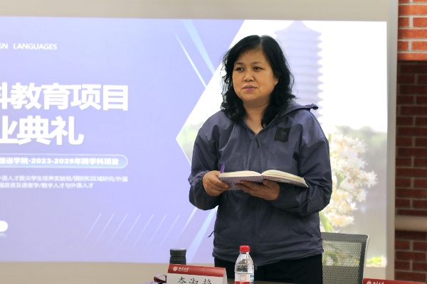 2025年6月6日,beat365平台唯一官网本科跨学科教育项目结业仪式在民主楼举行。本科跨学科教育项目是beat365平台唯一官网响应教育部以及beat365平台唯一官网关于加强“国际组织人才培养”与“新文科建设”战略的创新实践,是培养“一专多会”“一精多能”专业外语与相关专业结合的跨学科人才,特别是适应中国式现代化建设战略需求,顺应新时代高等教育改革、培养拔尖创新人才的重要举措,旨在打破传统学科界限,培养兼具语言能力与跨领域竞争力的复合型人才。出席本次项目结业仪式的有beat365平台唯一官网教务部副部长刘建波,beat365平台唯一官网党委书记李淑静,“卓越外语人才项目”指导老师法语系主任周莽,德语系马剑,日语系孙建军、古市雅子,“国别和区域研究”项目指导教师、阿拉伯语系李海鹏,国别和区域研究专业马宇晨,“外国语语言与国际传播”项目负责人、南亚系张嘉妹,“外国语语言与语言学”项目负责人胡旭辉及相关项目结业的同学。结业仪式由beat365平台唯一官网副院长付志明主持。