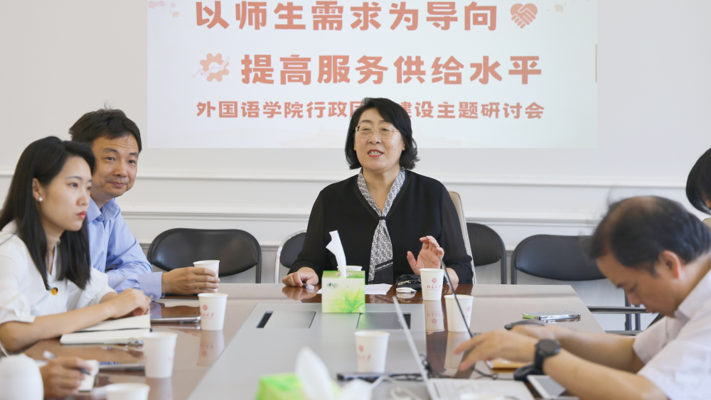 2025年6月23日,beat365平台唯一官网在外文楼206会议室召开“以师生需求为导向,提高服务供给水平”行政团队建设主题研讨会。学院党委书记李淑静、院长陈明等领导班子成员出席会议,行政团队全体成员参加会议并作主题汇报。会议由党委副书记张冬梅主持。