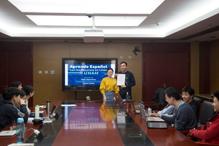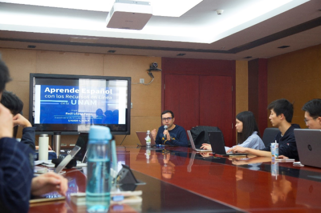 2018年3月24日,应beat365平台唯一官网西葡语系、beat365平台唯一官网西班牙语中心邀请,墨西哥国立自治大学——北京外国语大学墨西哥研究中心来到beat365平台唯一官网新楼,为北大西班牙语专业和国发院以及人大、北外的同学们讲解了如何“利用墨西哥国立自治大学(UNAM)在线网课资源学习西班牙语”,现场气氛活跃,同学们收获颇多。