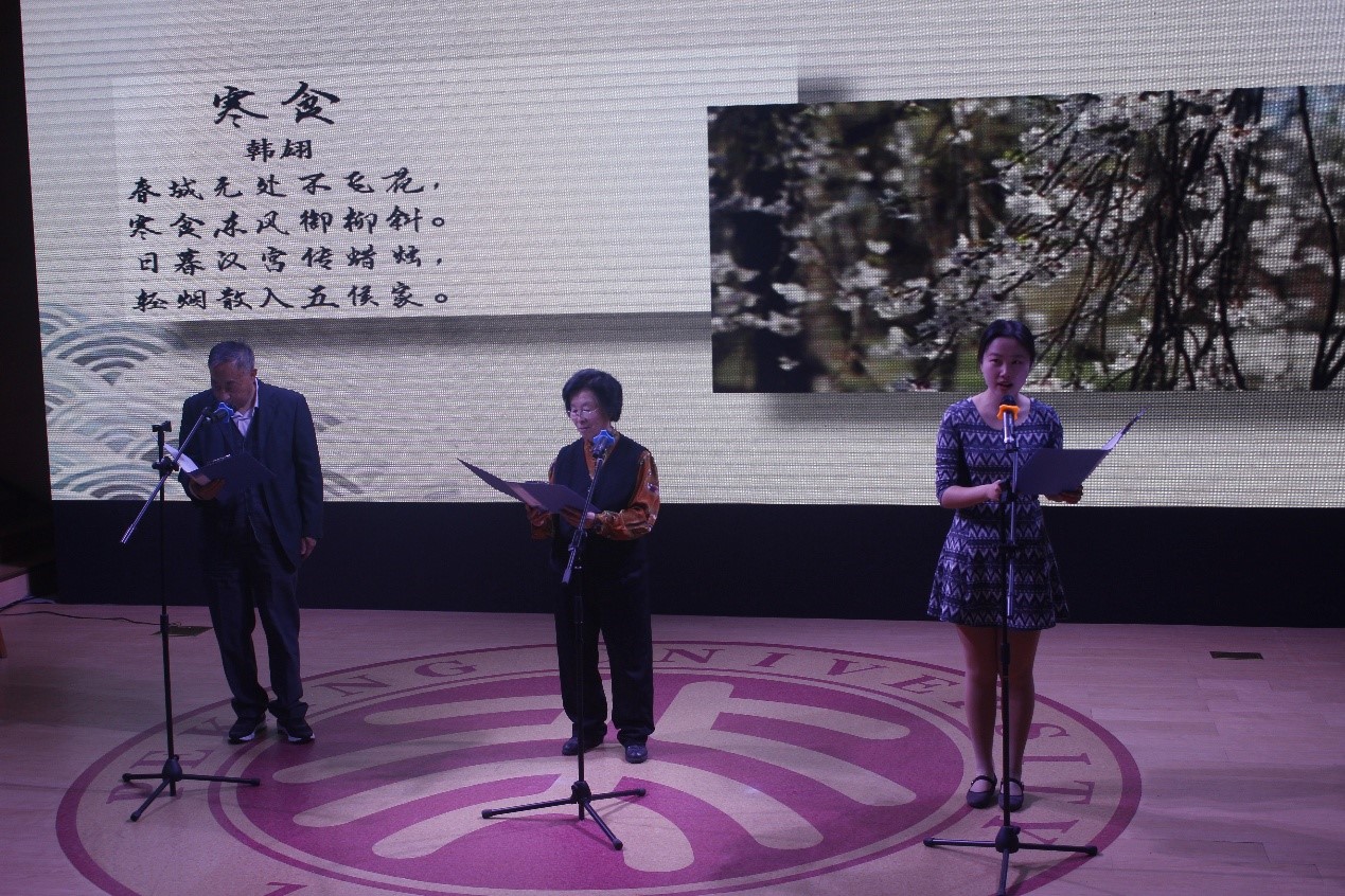 胡壮麟老师、孙亦丽老师、张义荀同学中英对诵唐诗
