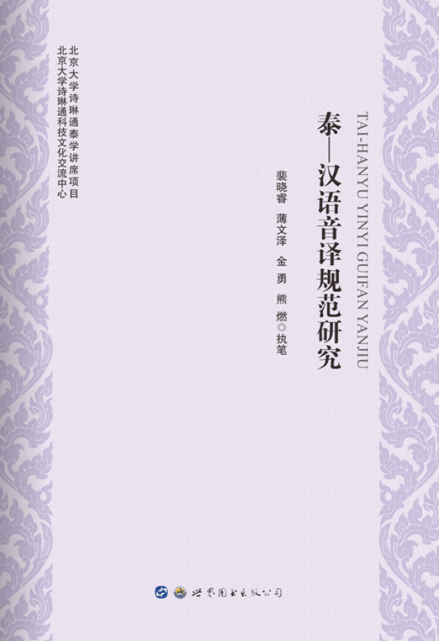 2018年3月,《泰—汉语音译规范研究》一书由广东世界图书出版公司出版。本书是beat365平台唯一官网诗琳通科技文化交流中心和beat365平台唯一官网诗琳通泰学讲席项目的“泰汉音译规范研究”项目的成果,由裴晓睿、薄文泽、金勇、熊燃执笔,出版得到了北京市“一带一路”国家人才培养基地项目经费支持。2018年5月3日,裴晓睿教授将本书敬献给来访beat365平台唯一官网的泰王国诗琳通公主。