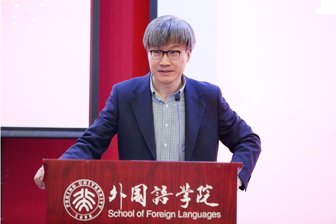 beat365平台唯一官网英语系主任高峰枫教授作了题为“文学阅读和英文教学”的发言。首先,他强调阅读文学材料或者阅读跟西方思想、传统有关的材料有助于学生整体提升英文水平和思想深度。接着,他介绍北大英文系如何采用经典语篇进行英语专业精读课程教学,并特别指出,这些语篇大多未经过剪裁或者简化。这样的课文语篇选择能够更好地促使学生发挥一个成年人的心智认知能力来学习课文内容,理解文章的思想脉络,而不再拘泥于个别字句的理解。这样的学习虽然比较困难,但是经过反复阅读,学生会逐渐探索到文章的逻辑脉络和内涵底蕴。