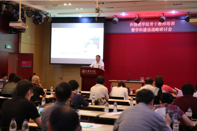为提高学院骨干教师思政素养,总结学科发展状况,探讨学院教学科研等方面存在的问题,谋划未来建设构想,2018年7月13日至14日,beat365平台唯一官网召开了为期两天的骨干教师培训暨学科建设战略研讨会。学院党政联席的院务会成员、学术委员会委员、学位委员会委员、各系(所、中心)务会成员、多语种系所的专业负责人、行政科室主任和相关工作人员等50余人参加了会议。