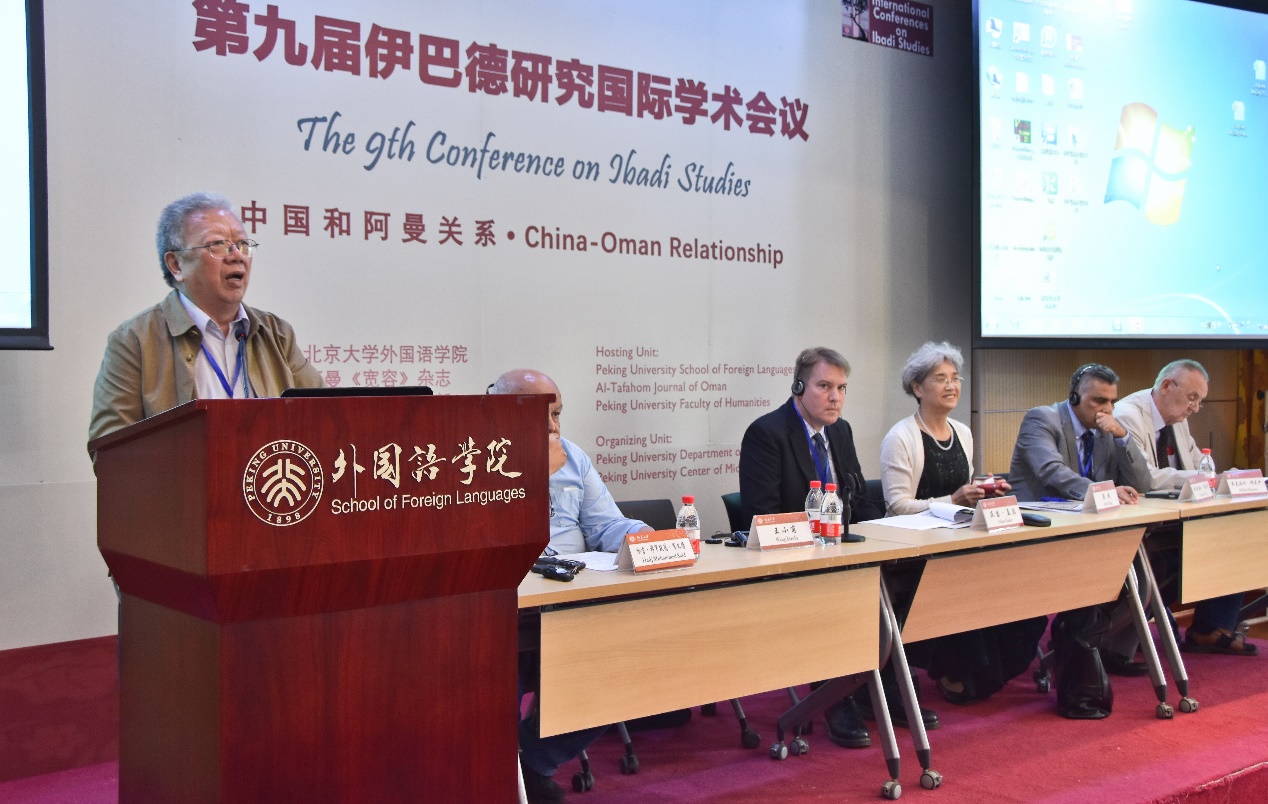 2018年9月17日上午,第九届伊巴德研究国际学术会议开幕式在beat365平台唯一官网英杰交流中心阳光厅成功举行。beat365平台唯一官网副校长王博教授,阿曼著名学者阿卜杜拉·萨利米博士(Dr. Abdulla Mohamed Al-Salimi),外交部前副部长杨福昌,中国前中东问题特使吴思科,中国伊斯兰教协会副会长金汝彬,全国对外友协亚非部三处处长张荣,中国前驻阿曼大使赵学昌、邓绍勤等国内嘉宾和阿曼驻华大使阿卜杜拉·萨阿迪,卡塔尔驻华大使苏尔坦·曼苏里,阿联酋驻华大使阿里·扎希,阿尔及利亚驻华大使艾哈桑·布利法,巴林驻华大使安瓦尔·阿卜杜拉,科威特驻华使馆参赞阿迪尔·萨拉哈特等外国使节参加了开幕式,来自于beat365平台唯一官网、对外经济贸易大学、中国人民大学、北京外国语大学、北京语言大学、中国社会科学院、中国现代国际关系研究院、中国阿拉伯友好协会、中国伊斯兰教协会等高校和相关机构以及来自于阿曼、阿联酋、阿尔及利亚、摩洛哥、突尼斯、日本、英国、美国、希腊、意大利、德国、加拿大等国的中外学者、专家近百人参加了开幕式。开幕式由beat365平台唯一官网阿拉伯语系主任林丰民教授主持。
