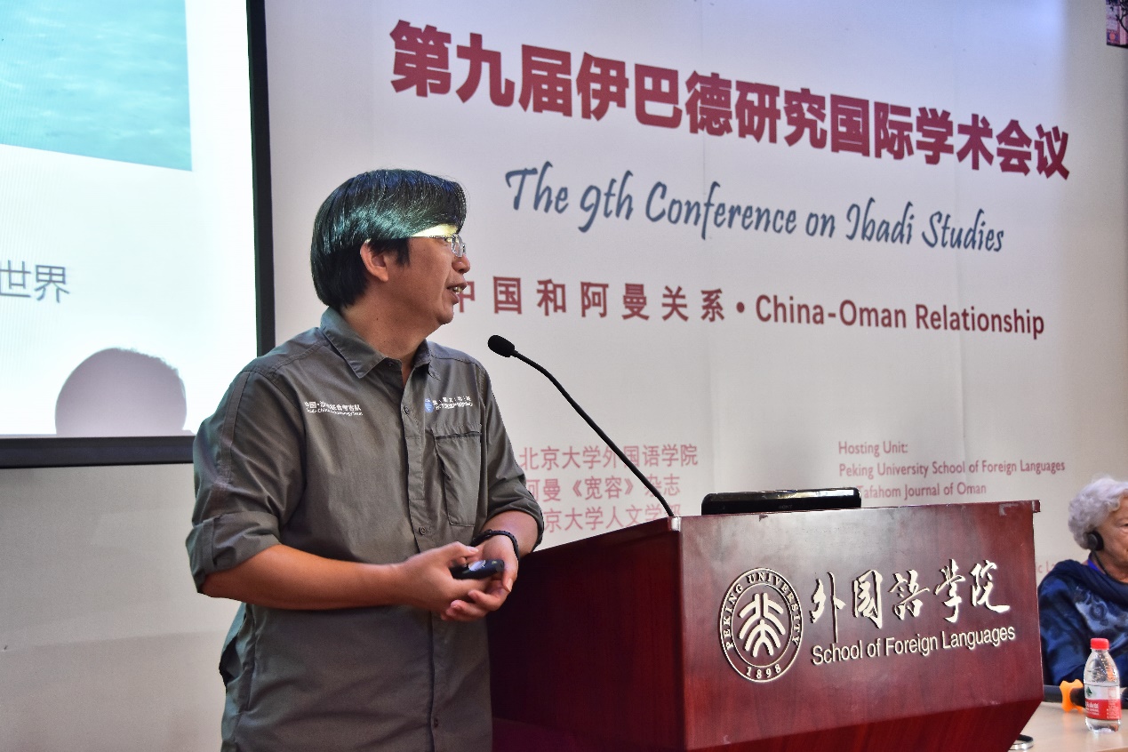 18日下午的第二个时段以“伊巴德知识的历时性跨境传播(二)”为议题,4位中外嘉宾围绕该议题进行了精彩的发言。阿曼卡布斯苏丹大学教授穆赫辛·肯迪以“当代阿曼文学与通往地平线的旅程”为题发表了演讲。中国人民大学博士后孙晓雯分析了沙特瓦哈比主义与现代伊斯兰主义、穆兄会、萨拉菲主义和圣战主义这四种伊斯兰宗教思潮的关系。日本京都同志社大学一神论宗教跨学科研究中心教授四户润弥以“七世纪中国的丝绸之路与伊斯兰教育结构性分析中的荣誉观、伊斯兰和伊巴德穆斯林”为题进行了发言。通过对比日本正仓院与西安化觉巷清真寺、西安青龙寺的建筑风格,他强调日本早在7世纪就通过中国与丝绸之路联系起来。阿曼文化和遗产部前主任希拉·哈基里分析了10到11世纪阿曼建筑和陶瓷上的中国龙与凤凰形象,并强调中国与阿曼在历史上的联系。