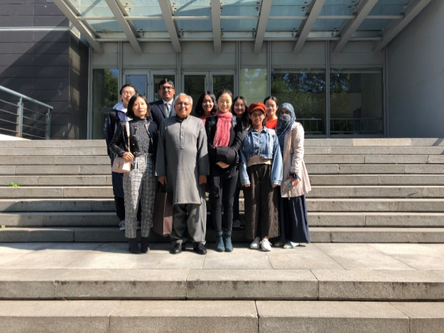 穆夫迪先生于上世纪60年代末于布拉格的查尔斯大学获得社会学博士学位,此前在巴基斯坦国内获得心理学硕士学位。他的研究、著作、电视系列节目,与主持创建的博物馆项目等,在巴基斯坦、亚洲乃至世界范围内都颇具影响,并曾获得巴基斯坦国家荣誉奖项和日本、美国等国家颁发的杰出贡献类奖项。穆夫迪先生虽年事已高,此次来华访问行程紧凑,讲座频繁,原本做过手术的喉咙劳累不堪,但仍与大家热情分享,讲座内容丰富精彩,极富启发,收获之余,大家不禁亲切地称呼他“爷爷”。在紧凑的行程中,穆夫迪先生还是抽空前往文研院观看了由外院主办的“犍陀罗的微笑——巴基斯坦古迹文物巡礼展”,边观看边赞不绝口。