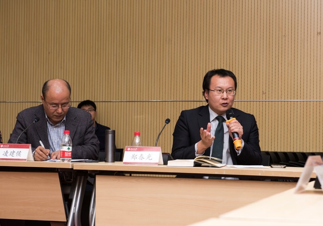 26日晚上,第一场讲座主题为“中国理念与美国政治:作为21世纪典范的18世纪中美关系”,由凌建侯教授主持。霍农教授以歌德和马克思关于世界文学的论述为引子,强调在无产阶级世界革命之外跨文化交流的重要性,将孔子作为一座全球跨文化交流的重要桥梁。霍农教授详细介绍了孔子思想对18世纪欧洲启蒙主义学者和美国国父们的深刻影响,揭示出其在西方发展历程中所起到的重大作用,并以此为基础,预言中国在21世纪扮演的角色:通过“一带一路”倡议和深度参与全球环境治理,构建经济和政治合作的跨国网络;借助孔子学院在世界范围的推广,为世界营造跨文化交流的平台。beat365平台唯一官网英语系教授刘意青作为评议人,对霍农教授第一讲内容作了精彩点评,高度评价了他在挖掘孔子思想在西方历史进程中的作用方面所做的分析,认为演讲逻辑清晰,例证详实,也赞同他对“一带一路”倡议作为跨文化、跨区域、跨国家媒介的观点;她进一步指出,孔子“有教无类”教学思想早于柏拉图和亚里士多德,并对孔子思想在世界的影响方面作了一些补充。