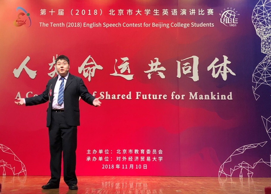 11月10日晚上,在秋意渐浓、五色斑斓的对外经贸大学校园里,在灯光闪耀、典雅恢宏的图书馆报告厅内,以“人类命运共同体”为主题的第十届(2018)北京市大学生英语演讲比赛经过一天激烈的角逐最终揭晓,我院日语系二年级本科生卢建璋同学从北京各高校经过初赛选拔出的诸多选手中脱颖而出、力拔头筹——以总分第一的成绩勇夺特等奖。