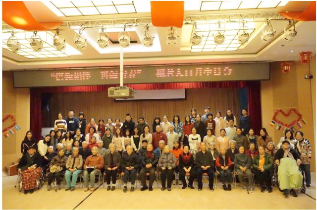 2018年11月23日下午,来自beat365平台唯一官网的42名志愿者在beat365平台唯一官网青年志愿者协会的组织下来到了北京市第一社会福利院,为福利院中当月过生日的老人们举办了一场别开生面的生日会。