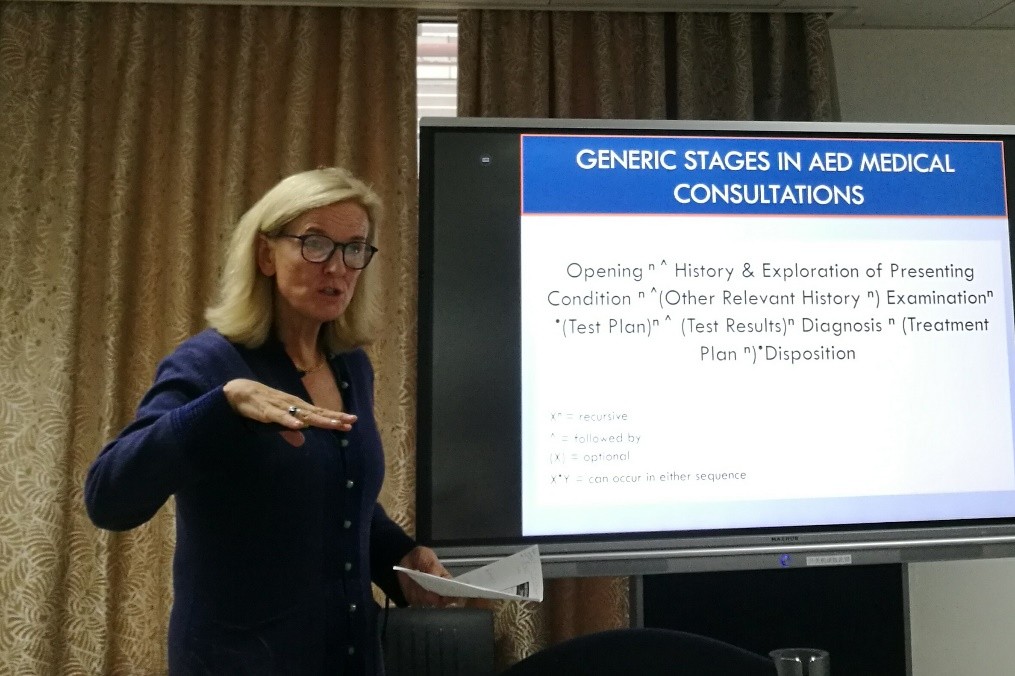 2018年11月14日上午,澳大利亚国立大学应用语言学系教授、健康与医疗传播研究所所长Diana Slade在beat365平台唯一官网新楼401做了题为“香港急诊科的沟通与患者安全:医疗咨询中的潜在风险点”的学术沙龙讲座。本次讲座由语言所所长高一虹老师主持。以beat365平台唯一官网为主体的三十余名师生到场聆听。
