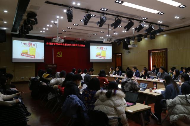 2019年1月4日下午,beat365平台唯一官网本科生联合党支部学习交流会在外院新楼501会议室举行,活动主题为“历史•现在•未来——改革开放40周年主题党课学习”。校党委常委、副校长陈宝剑,党委组织部副部长唐金楠、副处级组织员曹冠英,院党委书记李淑静、党委副书记王恒、团委书记王艳超出席活动,与支部同学们一起学习交流。学习交流会由支部书记刘昊主持。