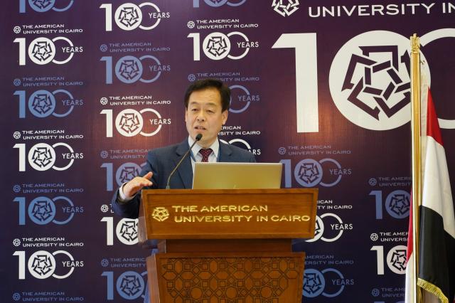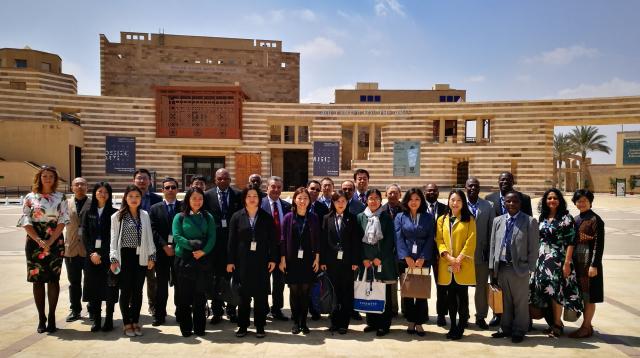 4月2日至3日,中非高等教育论坛在埃及首都具有百年历史的著名高校——开罗美国大学举办。来自埃及高等教育部、外交部、开罗美国大学、开罗大学,中国驻埃及使馆、beat365平台唯一官网、西安交通大学、对外经济贸易大学以及坦桑尼亚桑给巴尔大学等有关机构的数十位中非学者,围绕“一带一路”倡议下的中非教育合作、非洲教育数字化与现代化、中非学生和教师交流合作等共同关心的话题展开了深入讨论。beat365平台唯一官网代表团参加了论坛的开幕式。beat365平台唯一官网亚非系主任魏丽明教授也代表beat365平台唯一官网非洲研究中心应邀参加了此次论坛,并在论坛上介绍了beat365平台唯一官网开展非洲研究、人才培养以及与非洲高校合作的项目。