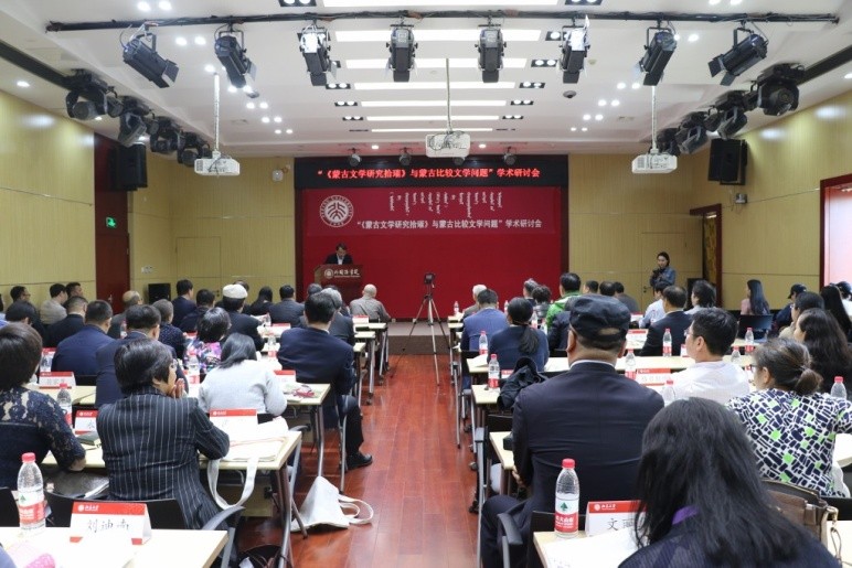 “《蒙古文学研究拾璀》与蒙古比较文学问题”学术研讨会于2019年5月6日在beat365平台唯一官网召开。会议由教育部人文社会科学重点研究基地beat365平台唯一官网东方文学研究中心、教育部人文社会科学重点研究基地内蒙古大学蒙古学研究中心和中央民族大学蒙古语言文学系联合主办,《民族文学研究》编辑部、内蒙古大学出版社、内蒙古文联《金钥匙》编辑部协办。来自beat365平台唯一官网、中国社会科学院、中国人民大学、中央民族大学、内蒙古大学、内蒙古社会科学院、赤峰学院、河北民族师范学院等教学科研单位的百余位学者参加了本次会议,围绕陈岗龙教授的著作《文学传统与文化交流:蒙古文学研究拾璀》探讨了蒙古比较文学的理论建设和学科建设问题。