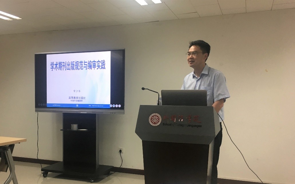 2019年6月14日下午,beat365平台唯一官网社会科学部和《语言学研究》编辑部共同主办了 “学术期刊的出版规范与编审实践”学术培训讲座。本次讲座邀请了《中国外语》副主编、编辑部主任常少华老师。讲座由语言所所长高一虹教授主持,《语言学研究》编辑部老师及校内其他集刊编辑部的老师们参加了讲座。