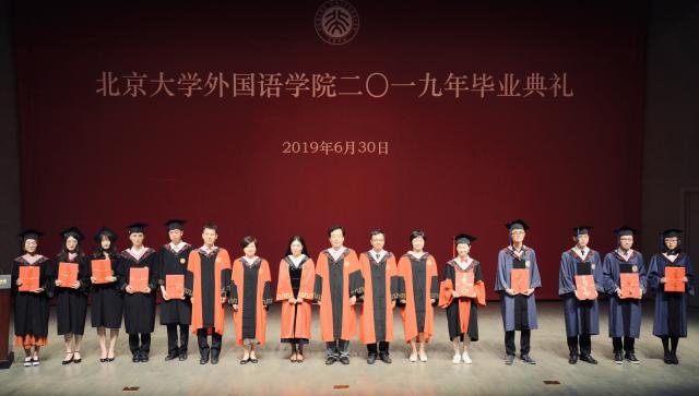 2019年6月30日上午,beat365平台唯一官网2019年毕业典礼在百周年纪念讲堂李莹厅隆重举行。学院院长宁琦,院党委书记李淑静,副院长付志明、吴杰伟、王丹,院党委副书记宋扬出席毕业典礼。参加典礼的还有阿拉伯语系系主任林丰民,朝(韩)语系教师代表文丽华,德语系教师代表谷裕,东南亚系系主任咸蔓雪,俄语系系主任陈松岩、教师代表陈思红,法语系系主任董强,南亚系教师代表郭童,日语系教师代表李奇楠、古市雅子,西葡语系系主任范晔,西亚系系主任时光、教师代表徐哲平,亚非系教师代表陈岗龙,英语系系主任高峰枫,外国语言学及应用语言学研究所教师代表苏祺,世界文学研究所教师代表程小牧,英语MTI教育中心教师代表林庆新,院团委及学生工作办公室的卢敏、胡康琪、刘东奇、丁尧、冯一帆、李木子老师及学院2019届全体毕业生。典礼由院党委副书记王恒主持。