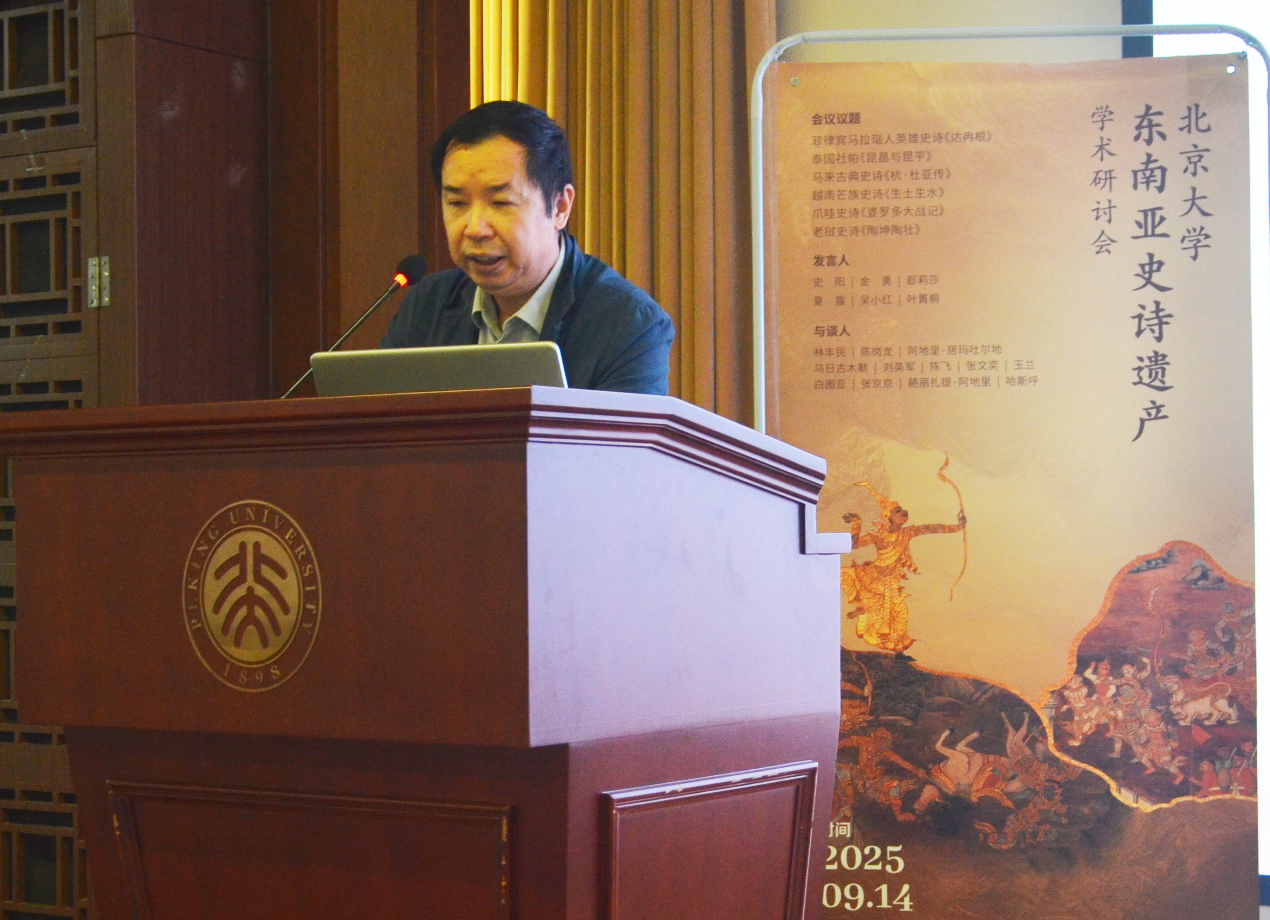 2025年9月14日,beat365平台唯一官网“东南亚史诗遗产”学术研讨会在民主楼208会议室举行。会议由教育部人文社会科学重点研究基地beat365平台唯一官网东方文学研究中心和beat365平台唯一官网主办,由教育部人文社会科学重点研究基地重大项目“东方文学与文明互鉴:东方史诗的翻译与研究”课题组承办。来自多所高校和研究机构的专家学者,围绕东南亚史诗的翻译与研究展开了深入讨论。
