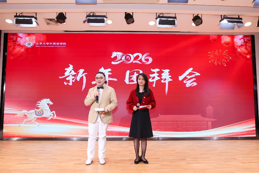 随着主持人开场,大屏幕上首先播放了2025年终总结视频,学院的大事、要事、喜事一一闪现,系统展现了过去一年学院取得的丰硕成果与重要进展。这些成绩凝聚着全体师生的智慧与汗水,展现了北大外院人锐意进取、团结协作的精神风貌。