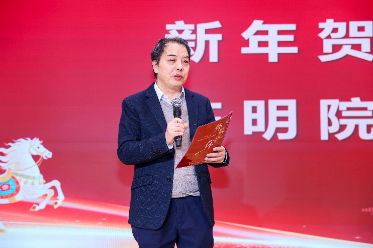 陈明院长致新年贺词,代表学院党政班子向前来参加团拜会的老师表示欢迎与感谢。他表示,回首2025年,学院在重重挑战下团结一致奋力前行,学院师生彼此支持、彼此照亮,感谢每一位老师以智慧和汗水共筑学院发展的基座。外语学科生生不息、历久弥新,感谢每一位坚守的老师,以教育的初心与实践持续回应时代的叩问,不负社会的期待。望大家在2026年继续携手奋进,共同迎接崭新的天地。祝愿大家身体康健、阖家幸福、工作顺遂、马到成功。