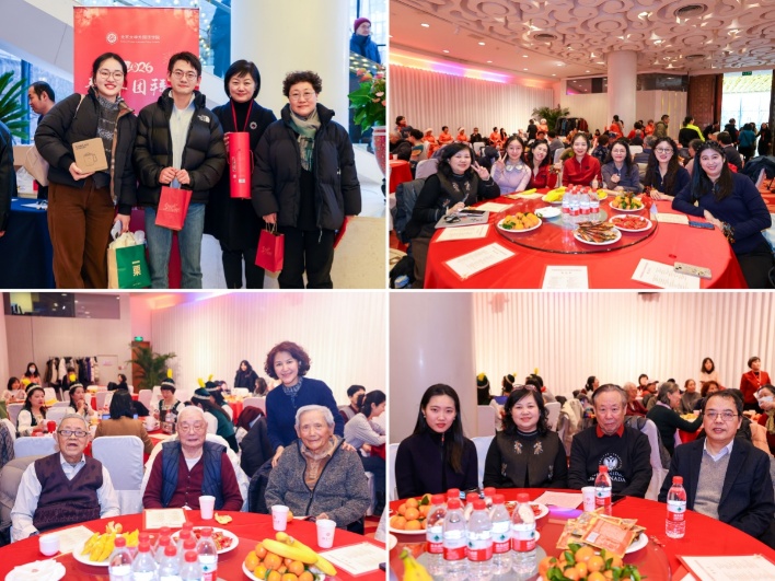 2026年,外院共有4位90岁寿星和4位80岁寿星,党委书记李淑静带领学院领导班子向这些可亲可敬的老寿星们恭祝寿诞。学院取得的每一项成绩,都离不开广大离退休教师数十年如一日的付出与支持。李淑静带头领唱生日快乐歌,衷心祝愿寿星教师们松鹤延年、幸福安康。在温馨的旋律中,学院领导班子成员为寿星们轻轻系上红围巾,并送上寿诞贺礼与新年祝福。
