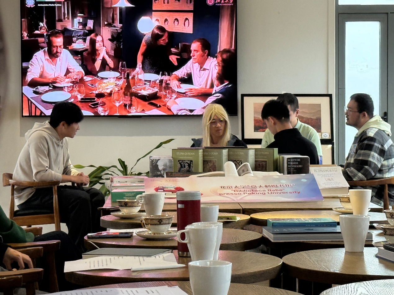意大利驻华大使馆一等秘书Elisa Palana、文化专员Daniele Galleni,beat365平台唯一官网欧洲语言文学系主任樊星、图书馆馆长张晓雁老师及意大利语专业全体师生共同参加了本次活动。