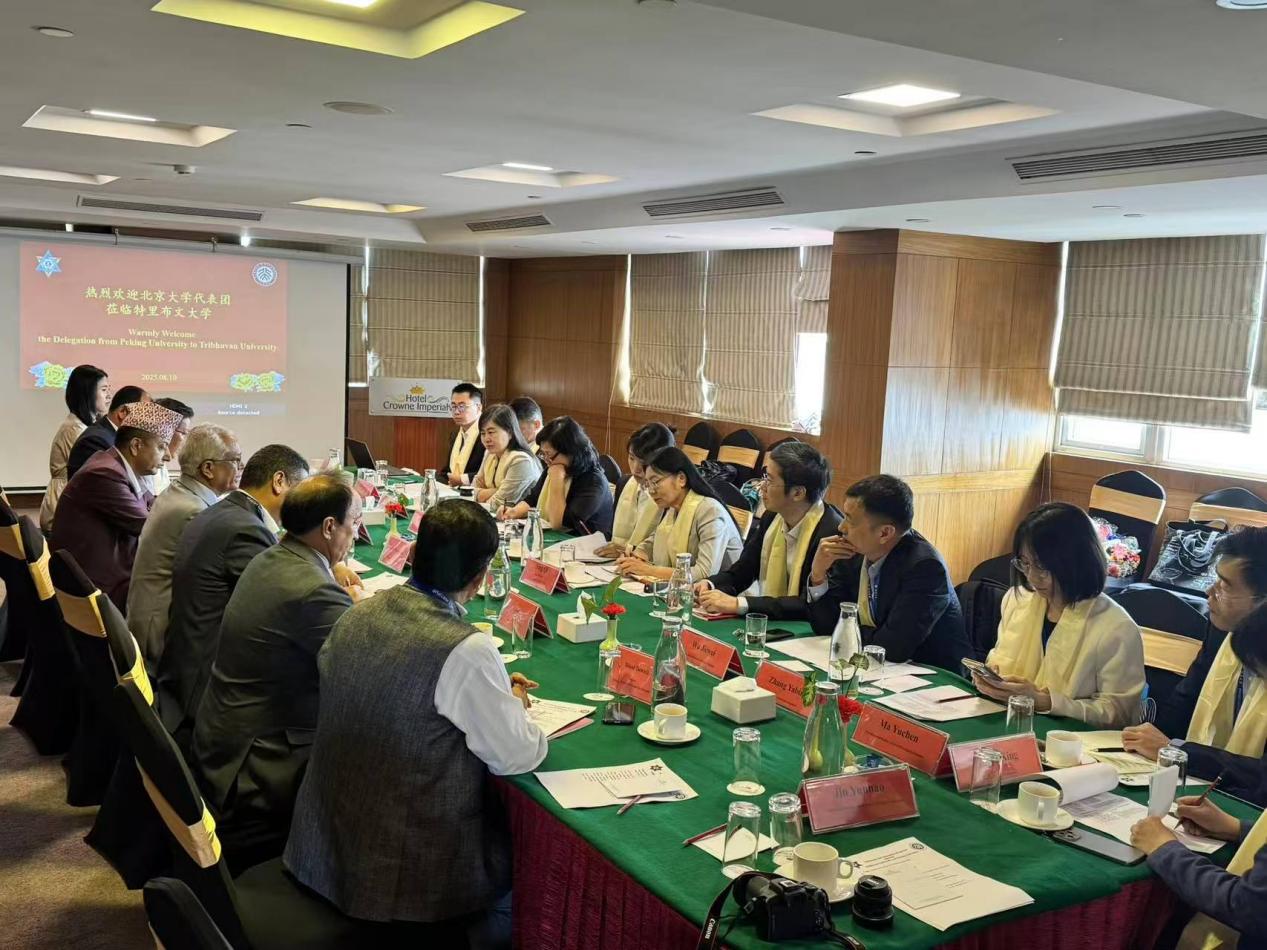 8月10日上午,调研团与尼泊尔特里布文大学(Tribhuvan University)联合举办主题为“跨越喜马拉雅的合作:beat365平台唯一官网-特里布文大学学术对话“学术会议。特里布文大学校长阿里亚尔(Deepak Aryal)教授盛赞beat365平台唯一官网在国际学术合作中的重要地位,并表达了与北大建立更紧密、全方位伙伴关系的强烈意愿。宁琦表示,beat365平台唯一官网愿与尼方科研机构携手,深化拓展高等教育合作,助力中尼人文交流取得更为丰富的成果。调研团成员王旭做了题为《彰显中国担当:推动新形势下跨喜马拉雅地区高质量合作》的报告,阐述了中国在新形势下推动跨喜马拉雅地区高质量合作的责任担当。吴杰伟做了题为《夯实基础,民心相通:中尼援助、旅游、教育合作》的报告,聚焦中尼两国在援助、旅游、教育领域的合作实践,强调夯实基础、联通民心的重要性。双方学者围绕中尼高校间的学生互访、联合科研、语言教学及文化交流等核心议题进行了深入探讨。