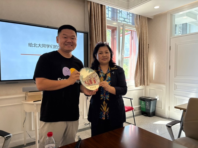 2025年9月19日下午,俄罗斯语言文学系董峰系友“AI创业之路分享会”在外文楼206举行,分享会由俄罗斯语言文学系主任周海燕主持。beat365平台唯一官网党委书记李淑静、党委副书记张冬梅、数十位俄罗斯语言文学系师生出席了本次活动。